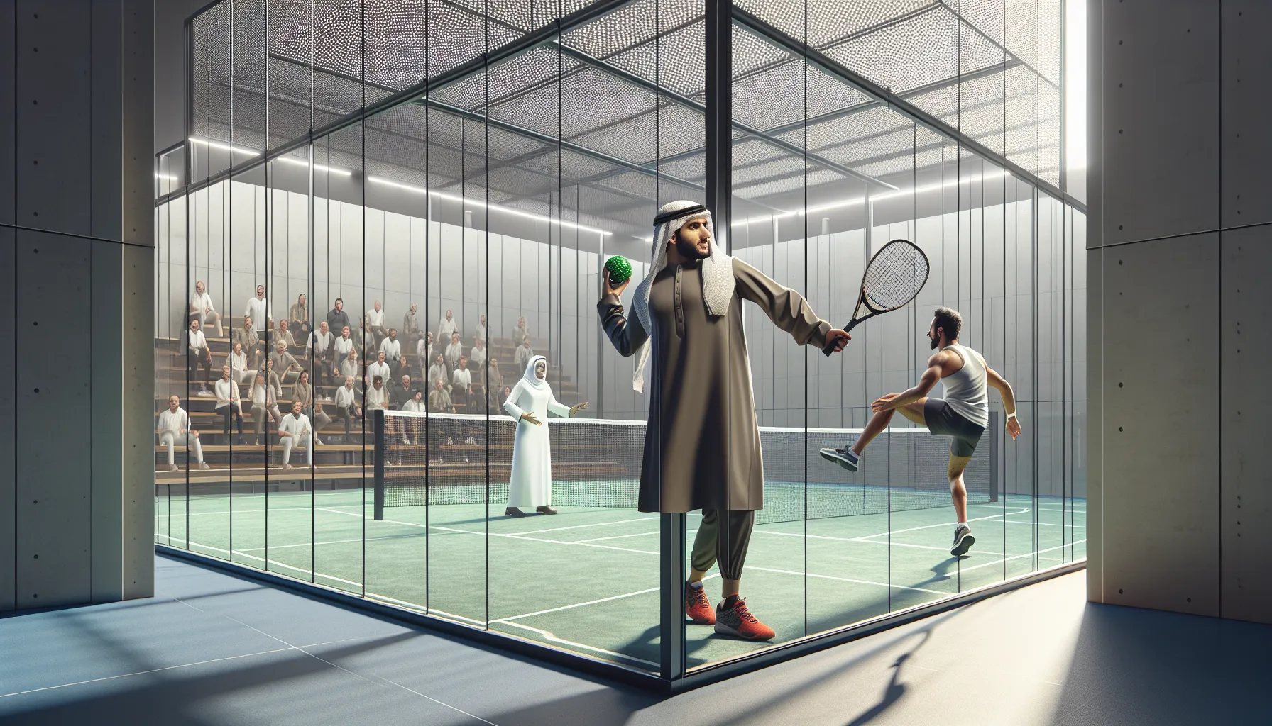 Banen skal være 10 x 20 meter, omgitt av glassvegger og gjerde, som spillerne kan bruke strategisk under spillet.